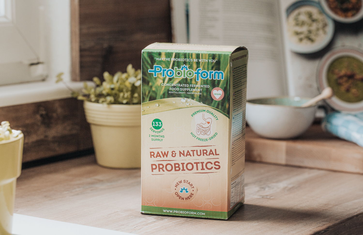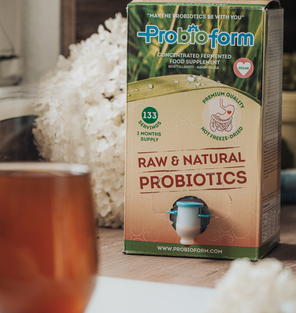Probioform bevat geen "pure cultuur" zoals andere probiotische supplementen - het laat de bacteriën op natuurlijke wijze groeien. Dit geeft stabiliteit aan de levende cultuur en maakt de kans veel groter dat deze de inname overleeft.